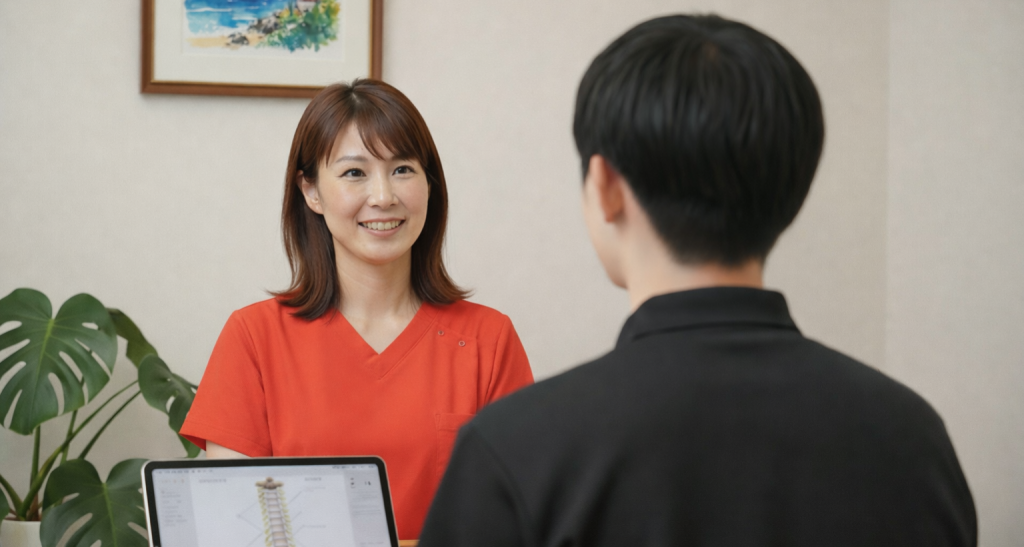 実際に身体を動かしていただくことで、どこを整えていく必要があるのか、どのようなペースで通うのが合っているのかを、より具体的にご提案することができます。